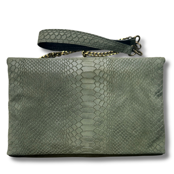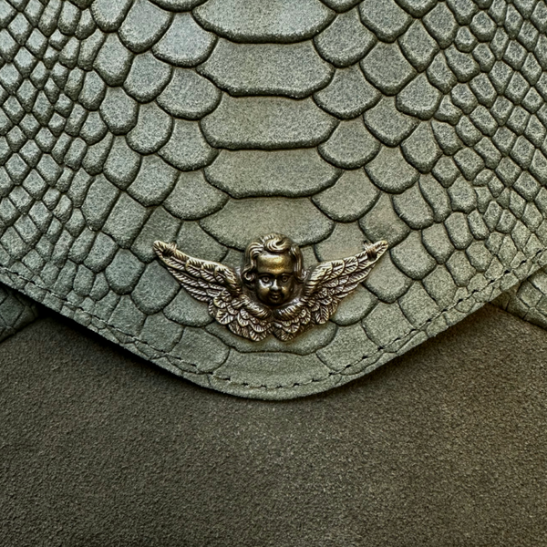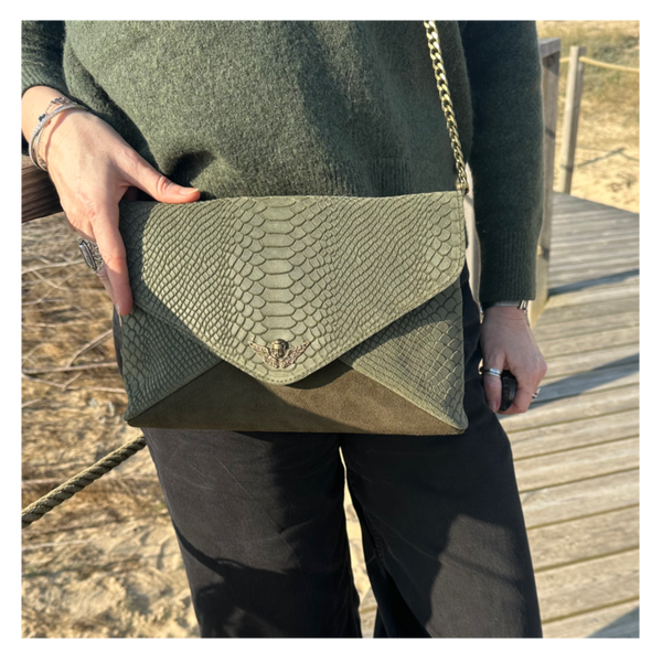 Sac TRISTAN Cuir suédé / Cuir suédé embossé façon python vert kaki