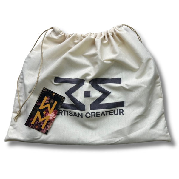 Sa silhouette élégante est sublimée par un fermoir orné d’un ange ailé, apportant une touche baroque et délicate. L’intérieur, doublé d’un tissu imprimé ethnique, dévoile une finition soignée et un espace de rangement optimisé.