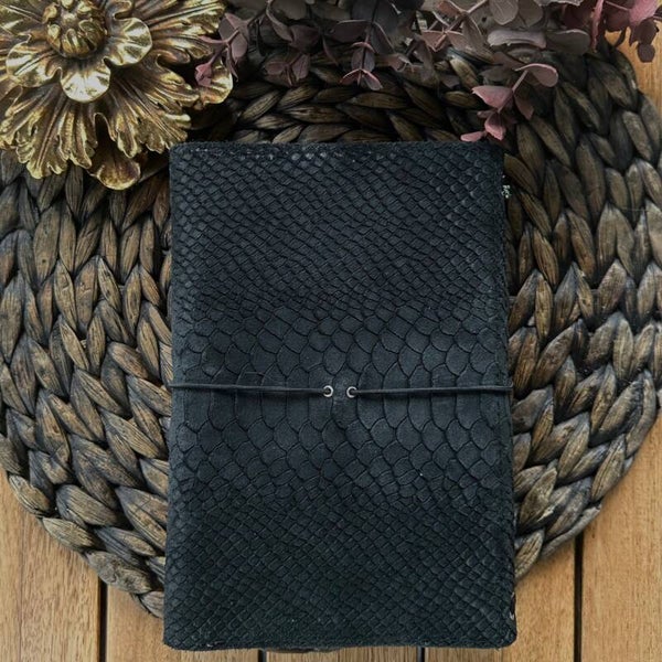 Mon grand carnet cuir suédé embossé façon python noir