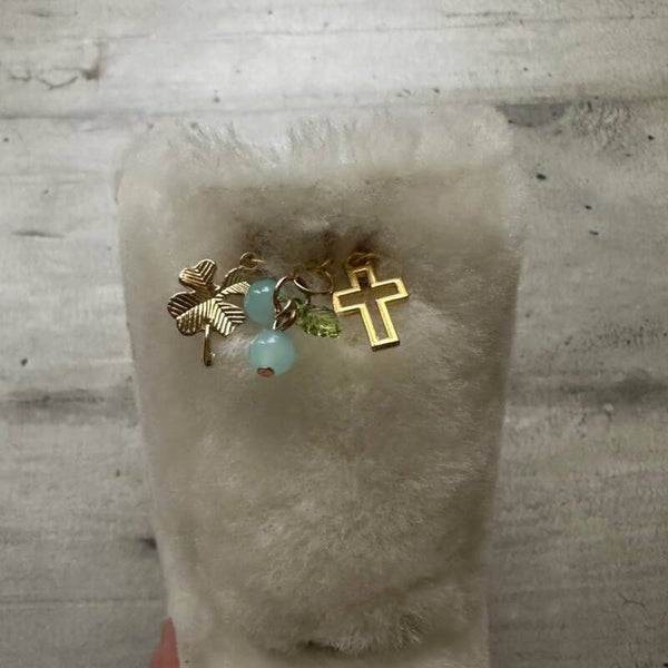 Réalisé artisanalement dans mon atelier, il est conçu en cuir lainé, coloris crémé et entièrement doublé de cuir. Il est organisé pour tout garder dans un petit espace :