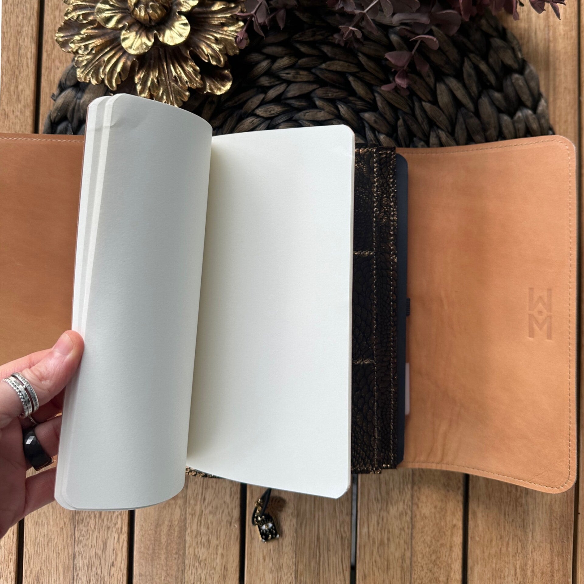 Ce carnet A5 est un véritable compagnon de voyage, à la fois élégant, fonctionnel et conçu pour vous accompagner dans toutes vos inspirations.