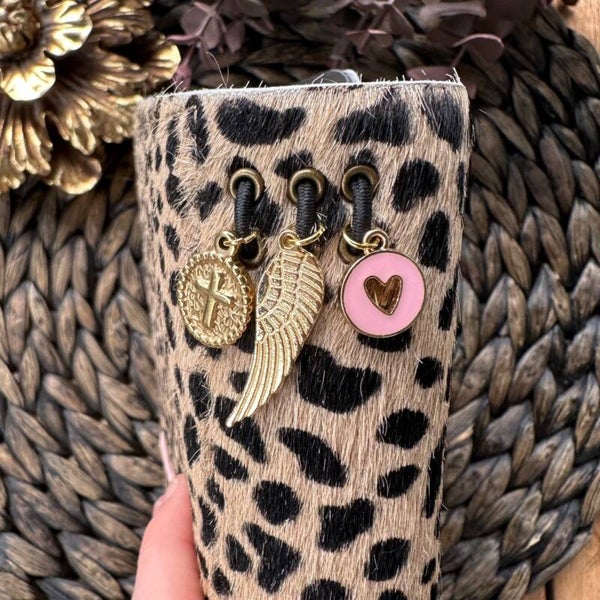 Réalisé à la main dans mon atelier, il est confectionné en cuir poils impression guépard, coloris noir/beige et entièrement doublé de cuir. Son système d’élastiques permet d’ajouter ou de retirer facilement carnets et accessoires, selon vos besoins.