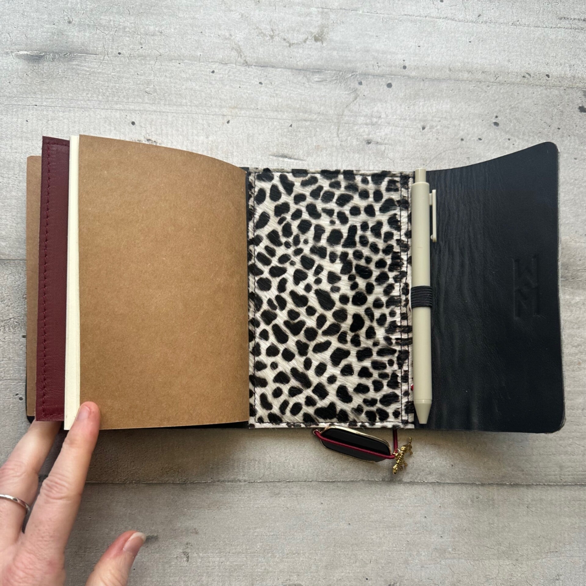 Mon petit carnet cuir poils guépard blanc/noir