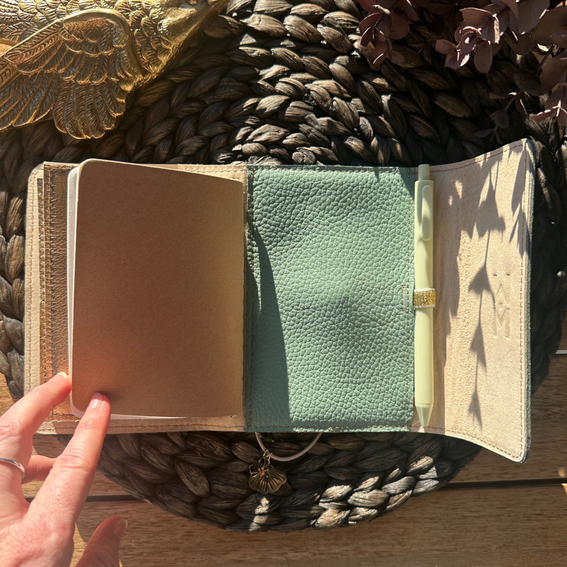 Mon petit carnet cuir grainé vert amande